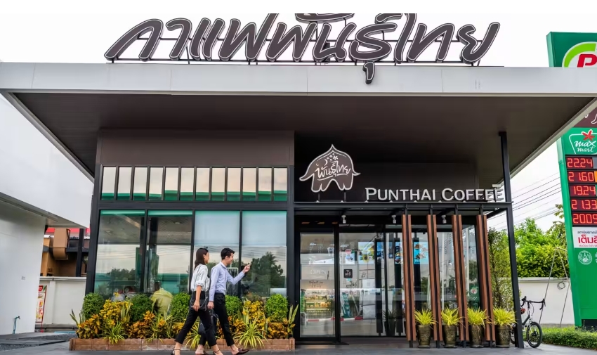PTG operates PunThai Coffee, known for its brown elephant logo and allowing customers to choose the level of bean roast when ordering coffee.