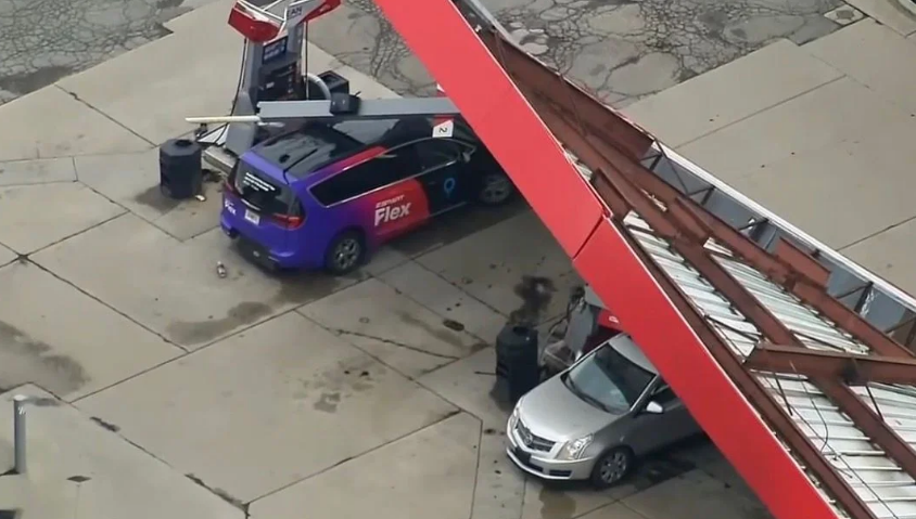 Full story Gas station canopy collapses onto pump, cars causing fire in Michigan - KTVZ