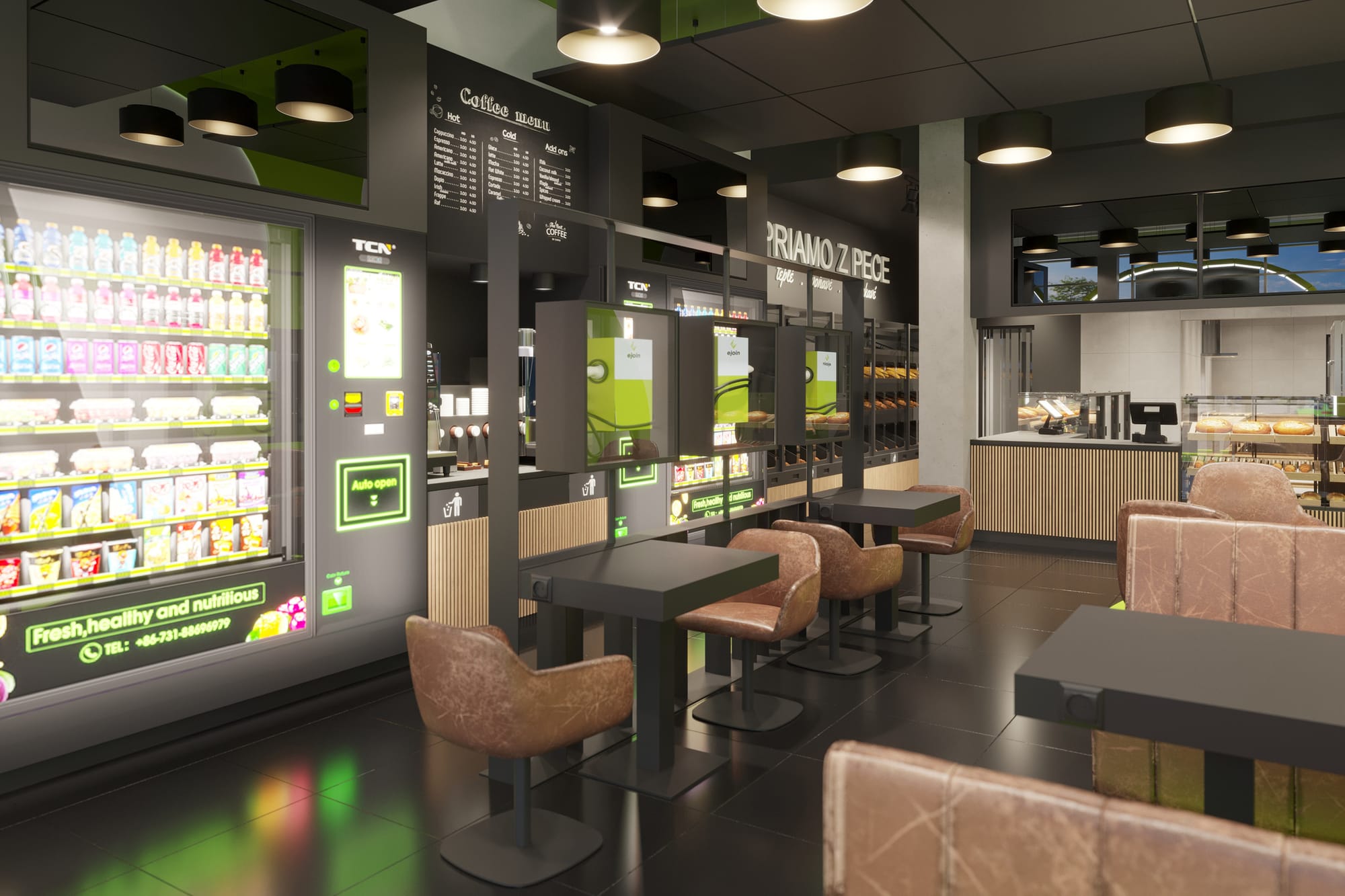 Judging by the images released, the cafe and shop facilities associated with the site seem outstanding, with fresh and healthy food in smart refrigerators, in stylish surroundings. modern and