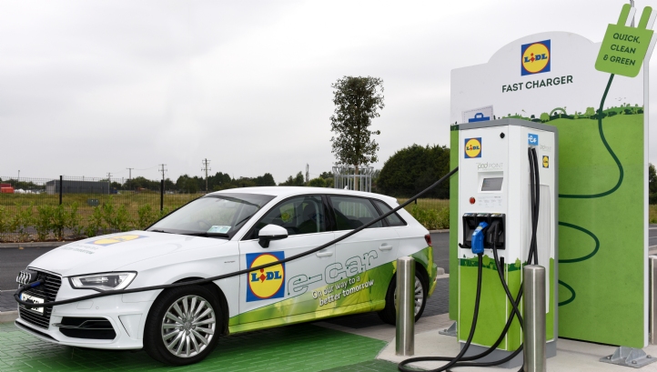 The chargers will be retrofitted at 10 Lidl stores and incorporated into the design of seven new stores currently in development. The chargepoints will be free for customer use and will provide an average 100km of driving range per charge, Lidl said in a statement. “Electric vehicles are indispensable in addressing the major challenges of improving air quality and curbing the use of fossil fuels,” Lidl Ireland’s director of property and central services, Alan Barry, said