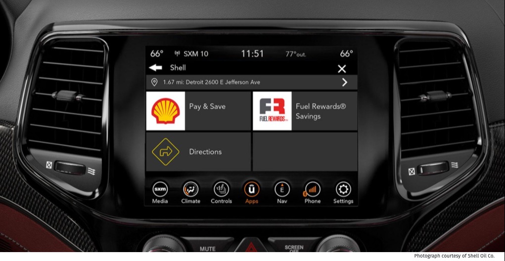 This makes Shell the only vendor in Uconnect Market that allows consumers to find the nearest gas station, purchase fuel and services and save money on Shell fuel purchases from the comfort of their vehicles, the company said.
