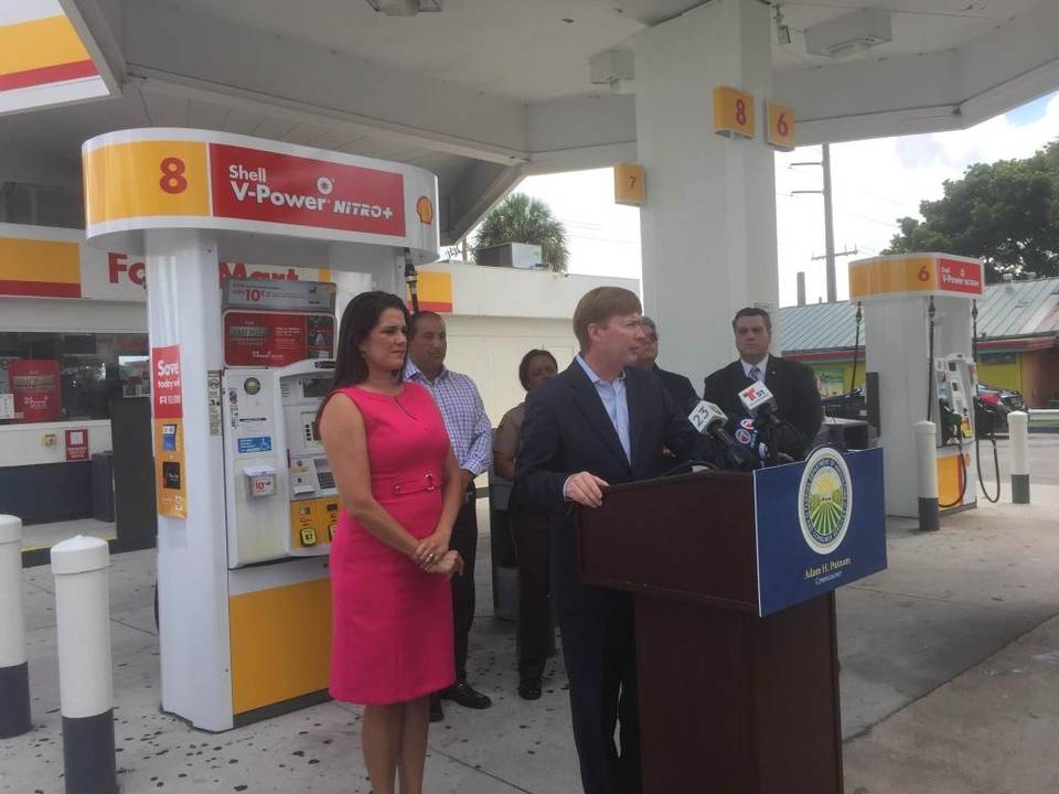 Comissioner Adam Putnam, right, and State Sen. Anitere Flores speak about their legislation enabling harsher penalties for gas station skimmers and more protections for consumers