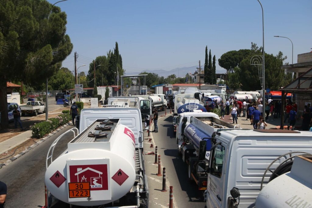 The protesters demanded that the government takes measures to support their businesses. According to the EU’s Green Line regulation, it is not illegal to fill up in the north, however, it is illegal to purchase fuel there and sell it in areas controlled by the Republic.